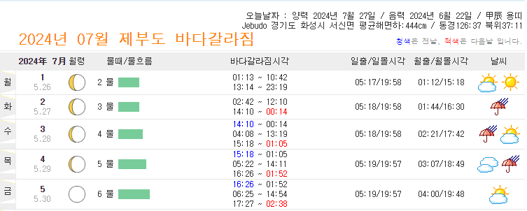 | 2024-07-27 | ํ ์์ผ | 10:49~19:17 | 23:01~07:24 |